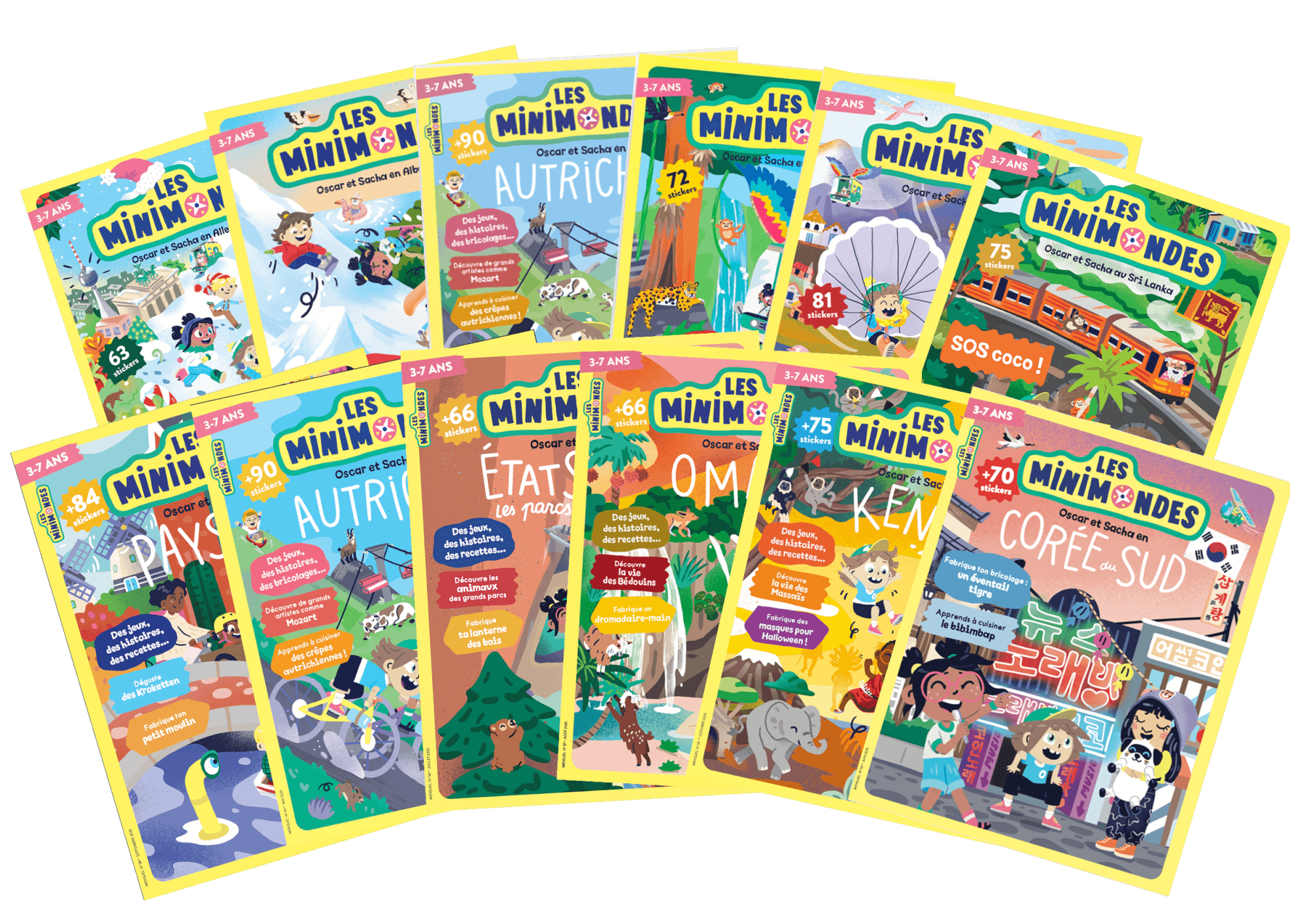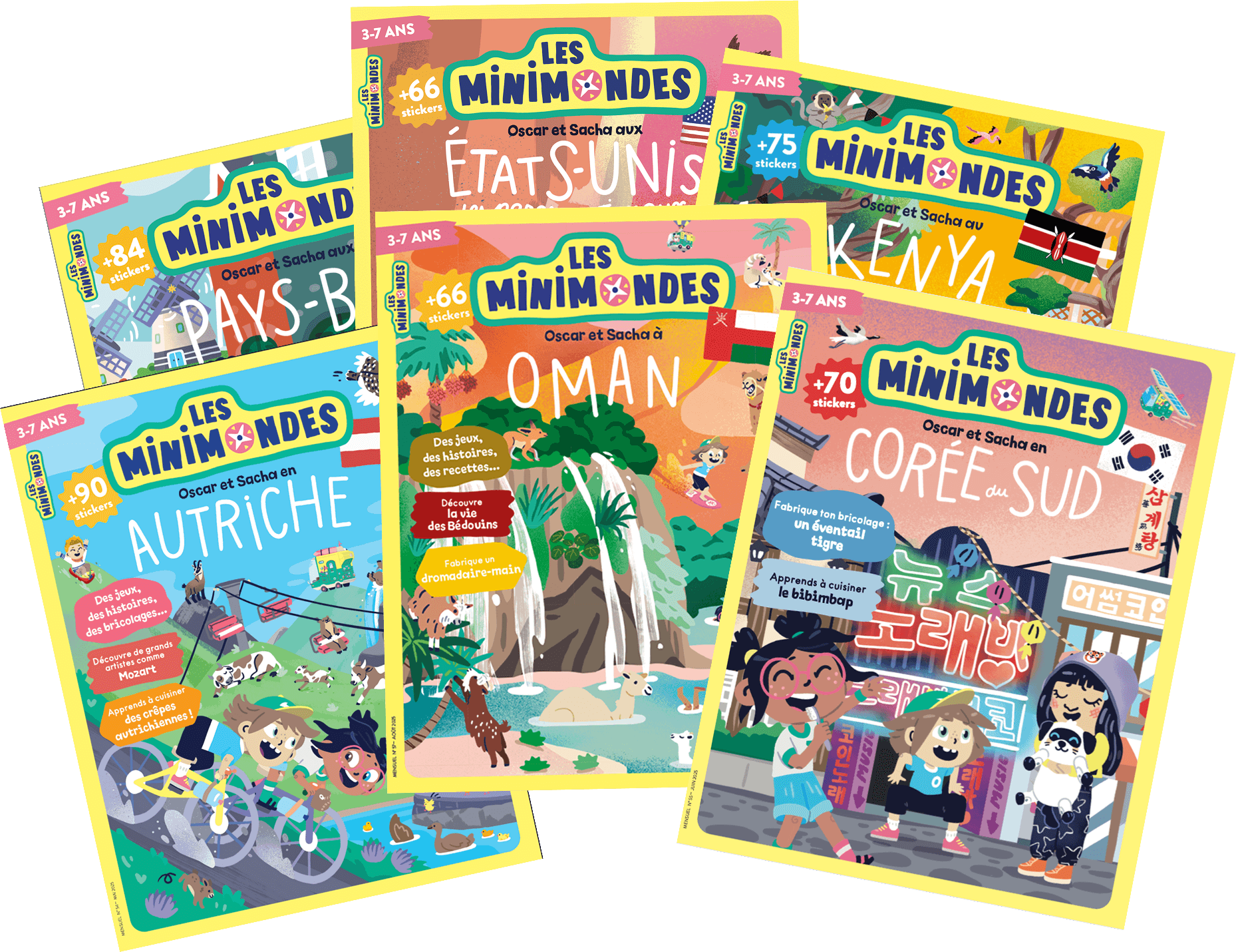 Chaque magazine contient des histoires, des jeux, des DIY, de magnifiques photos, des recettes, des rencontres avec des locaux et plus de 70 gommettes …
